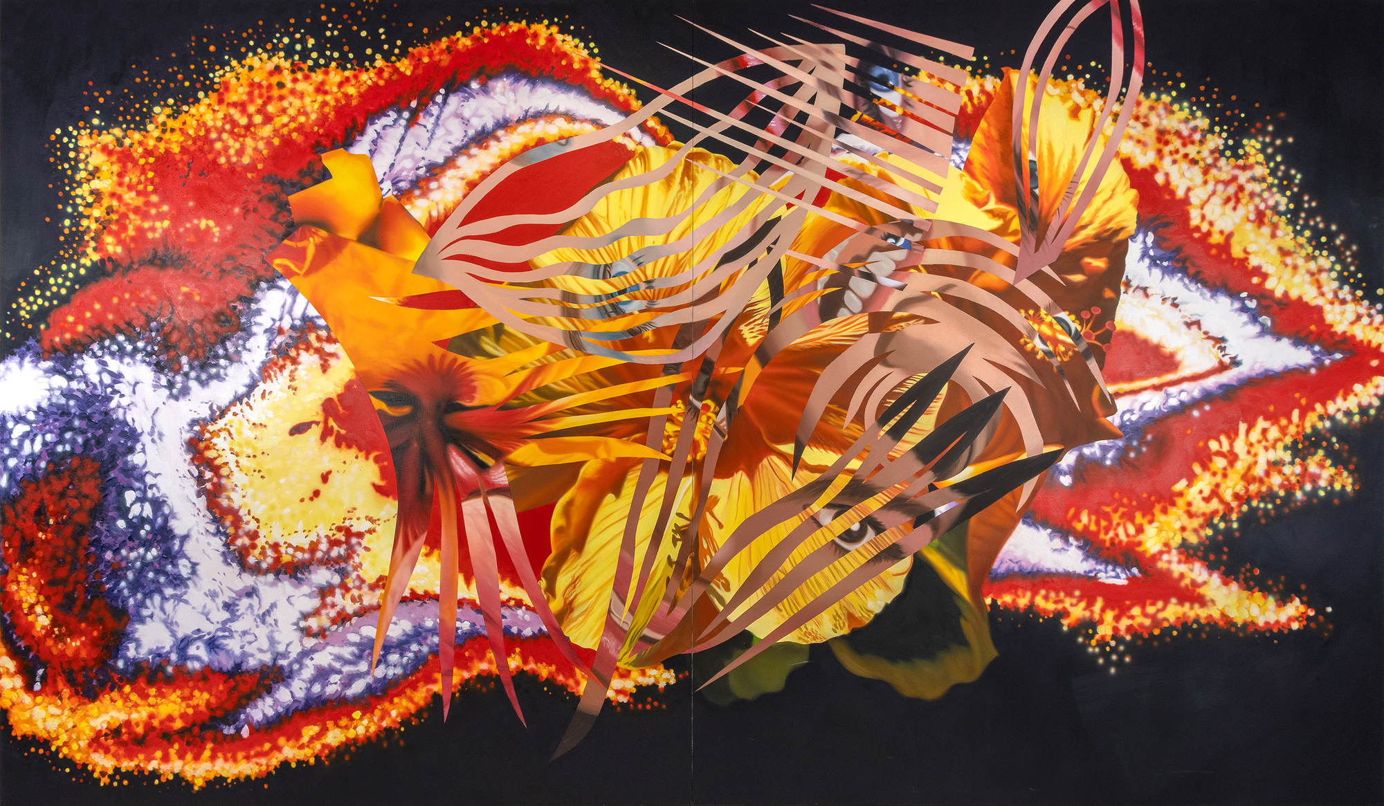 The striated layers of hyper-detailed imagery and profusion of warm colors evoke a radiant, otherworldly sun, while subtle human hints add intimacy, reflecting his distinctive blend of advertising heritage with personal vision. Crafted during a time of technological and environmental influence, it captures the vibrancy of Florida’s tropical flora and affirms Rosenquist’s enduring legacy with dramatic brilliance.