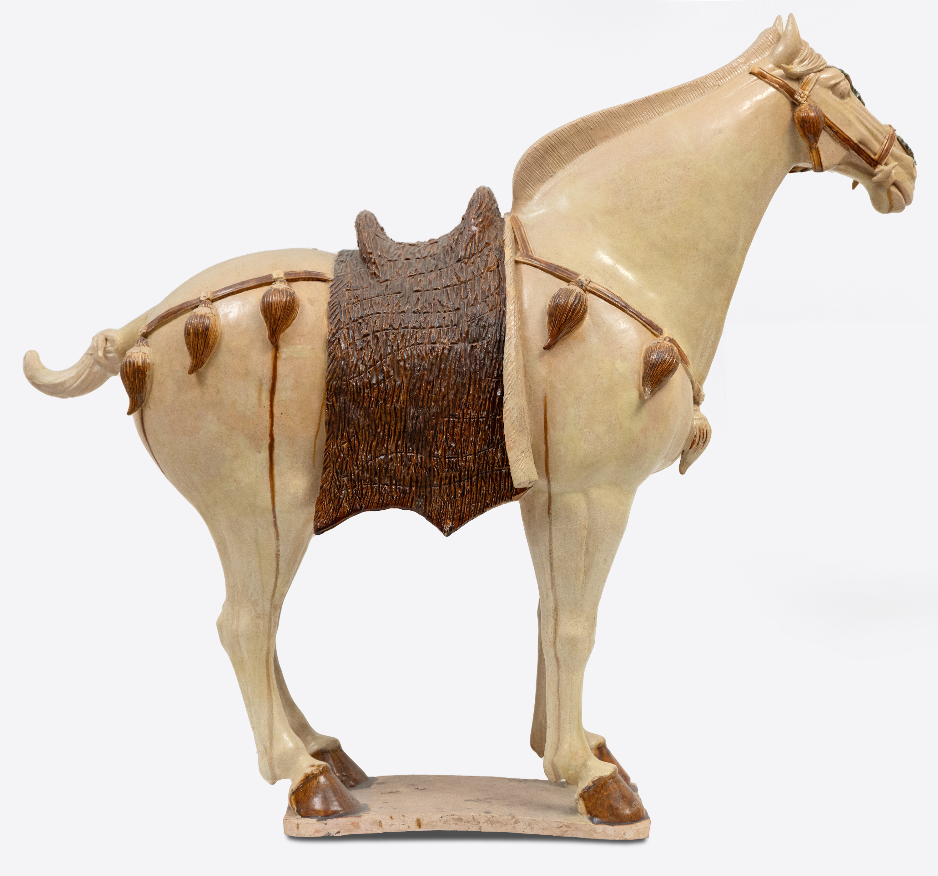Sancai-Glazed Horse with Cut-Fur Blanket, Tang Dynasty (618-907 AD)