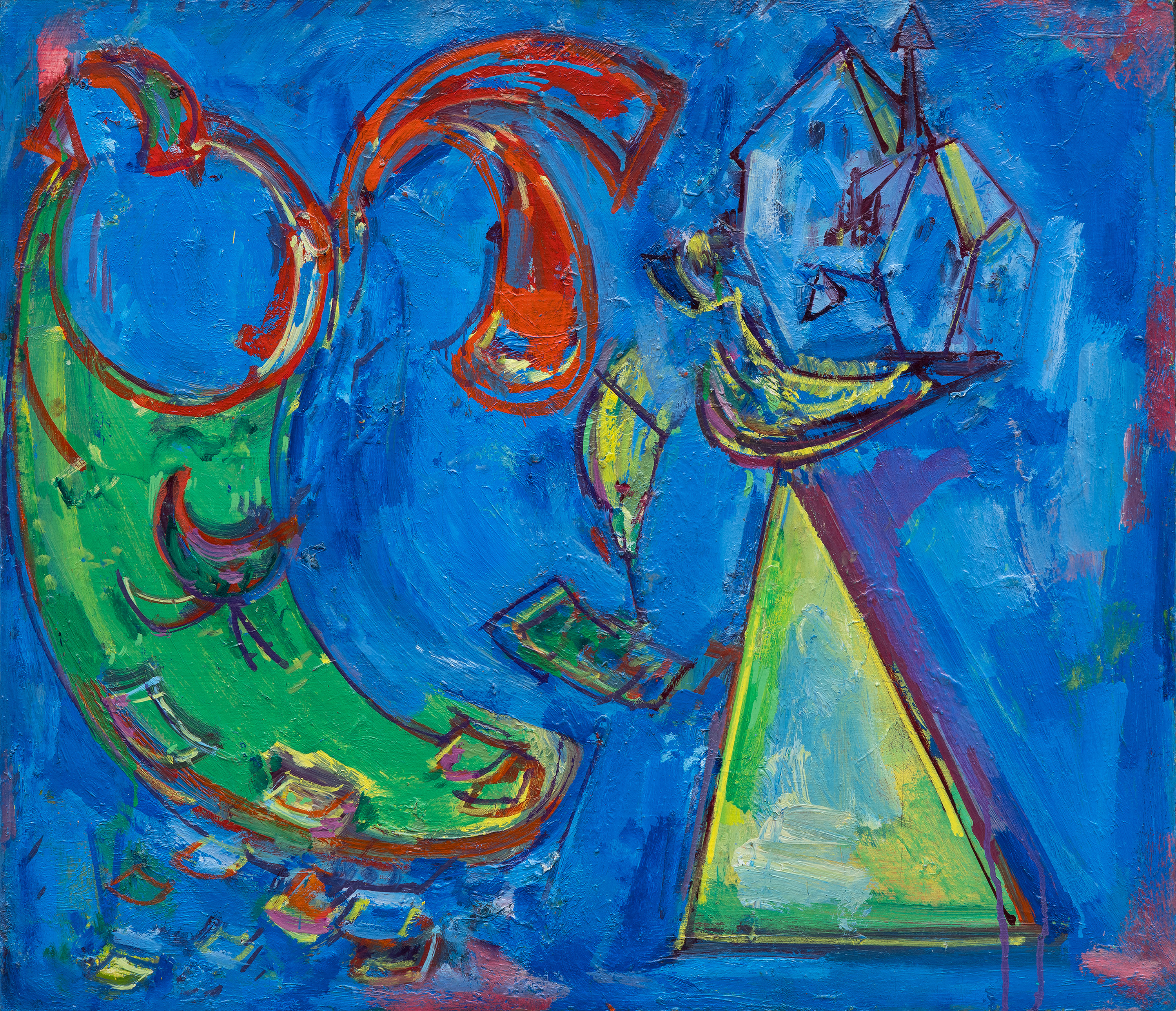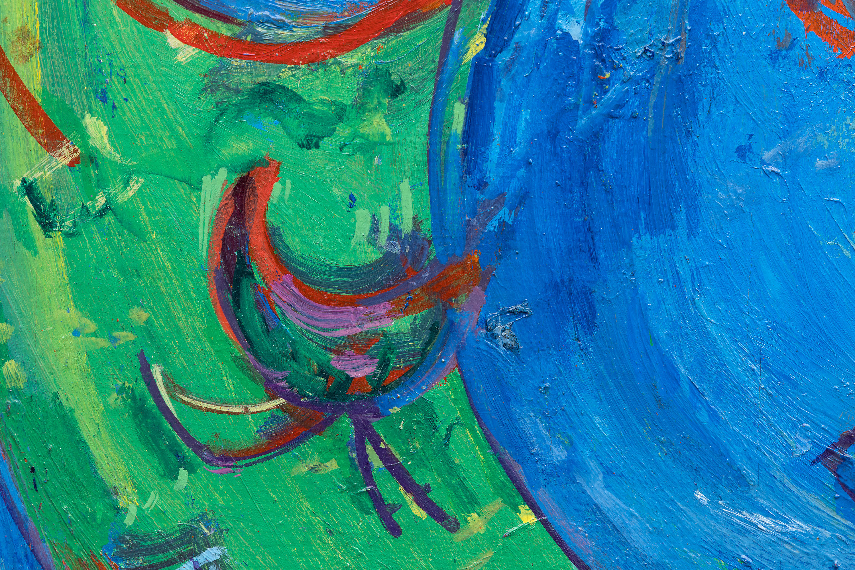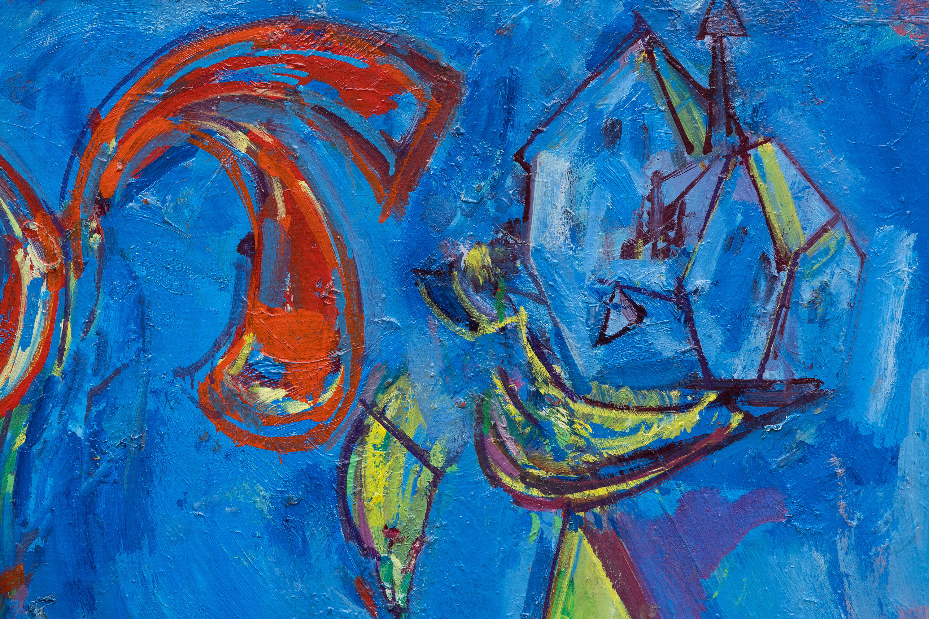 Heavily influenced by Surrealist automatism and the biomorphic forms of Joan Miró, the organic shapes and bold colors seem to pulse with life, blurring the boundary between abstraction and figuration. Yet, unlike Miró's delicate dreamscapes, Hofmann's brushwork carries a muscular energy, grounding the composition in his signature gestural style.