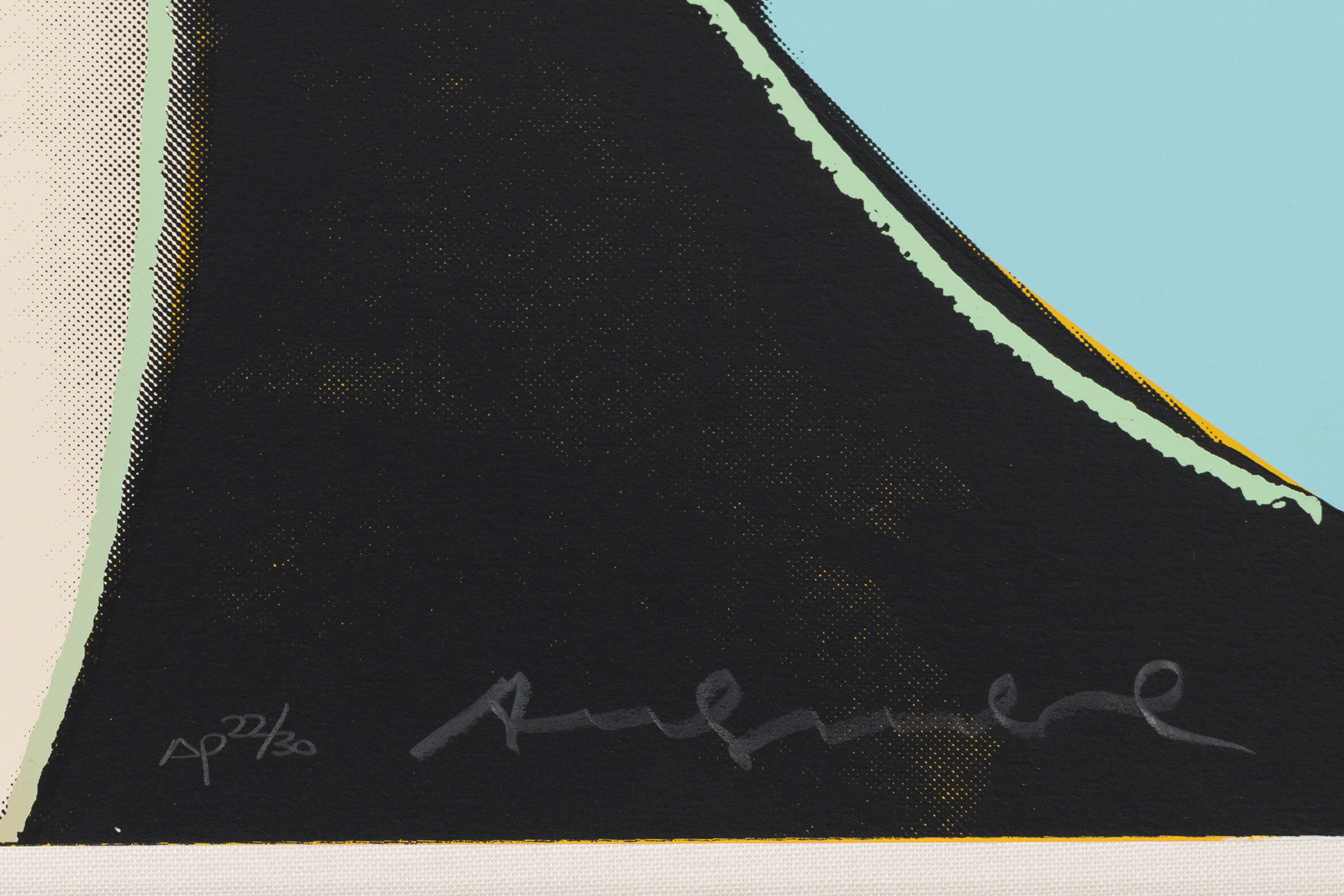 Andy Warhol’s Grace Kelly (1984) is a dazzling screenprint that immortalizes one of Hollywood’s most iconic stars, who later became Princess of Monaco. This impression, one of 30 artist’s proofs aside from the regular edition of 225, depicts Kelly with radiant canary yellow hair set against a turquoise ground. Her face, rendered through Warhol’s crisp silkscreened contours, is at once immediately recognizable and transformed into a bold graphic emblem.