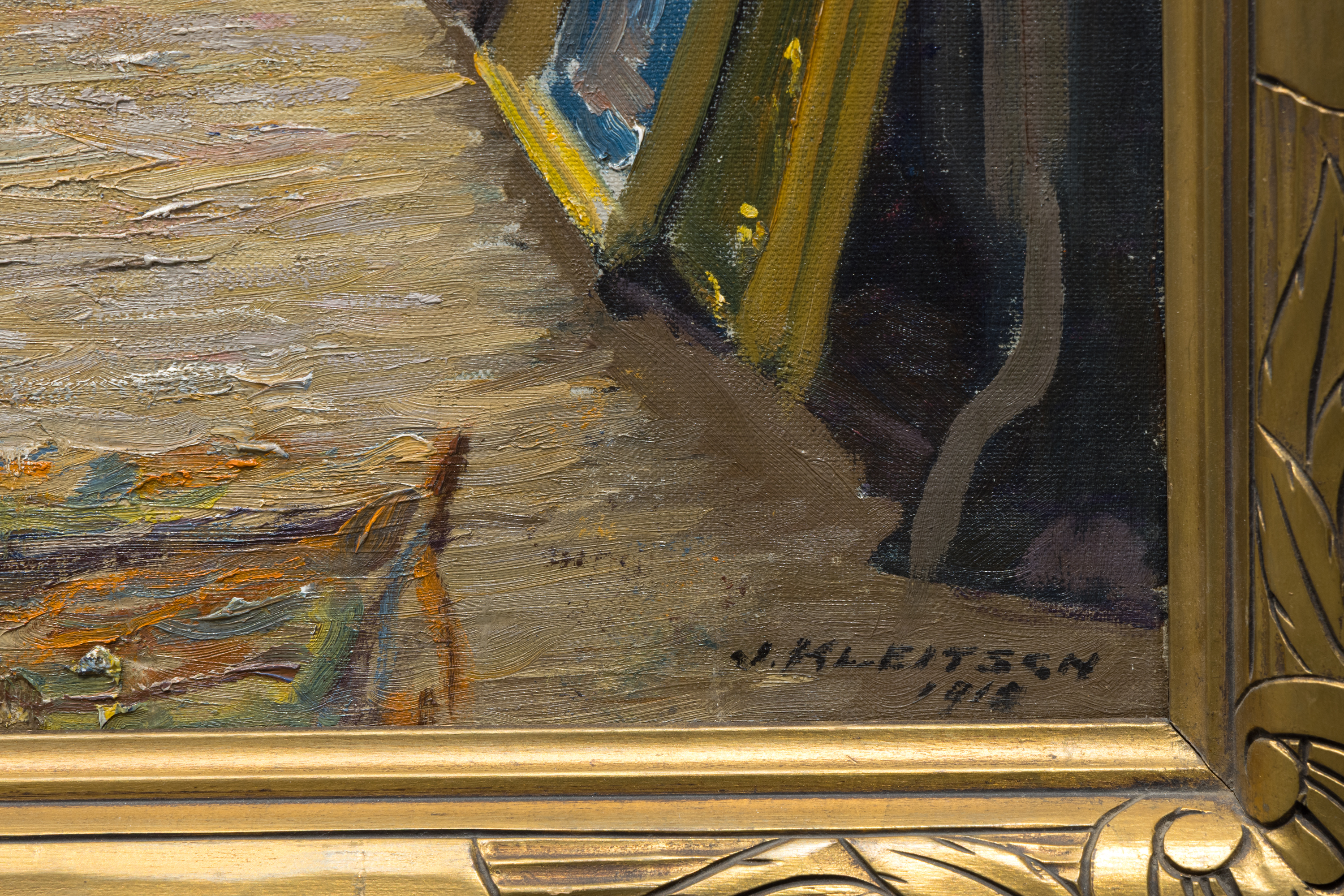 In the years leading up to his move west, Kleitsch was actively involved with Chicago’s artistic institutions, including the Palette and Chisel Club and the Art Institute of Chicago, situating him within a dynamic environment of evolving modern influences. During this time, Impressionist and Post-Impressionist works were increasingly visible in American exhibitions. While Kleitsch maintains a measured realism here, the Impressionist influence was incubating; he would later become renowned as a “master of gorgeous color” owing to the high-keyed vibrant palette of his California landscapes.