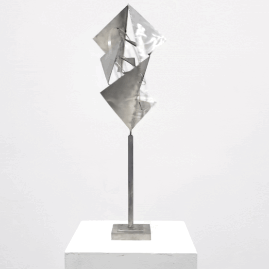 Rickey’s sculptures are more related to the Constructivist and Concrete Art impulses that sprouted worldwide before and during the same time that Rickey developed his visual language. These movements are noted for their use of geometric forms and abstraction that are conceptually constructed rather than artistically expressed. Unlike these early Constructivist and Concrete artists, Rickey avoided electricity to power his works and instead allowed wind to move his sculptures. Watching the movement and ever-evolving shapes of Rickey’s sculptures, the viewer is struck by the intersection of precise engineering and organic movement to create a sense of continual renewal.