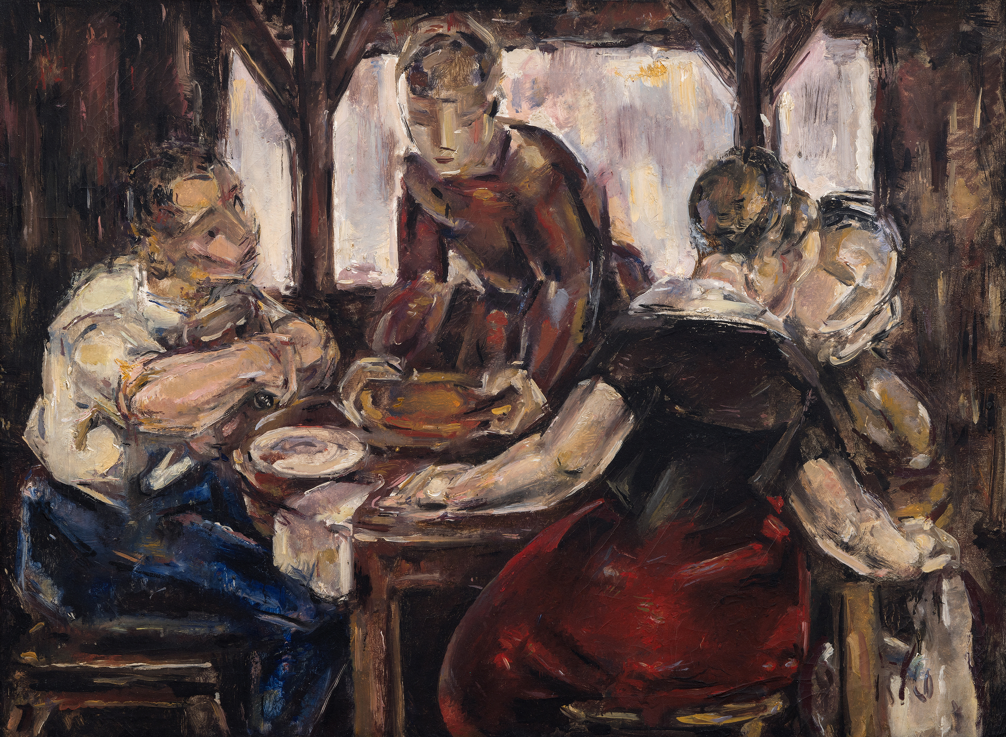 布兰查德在 1921 年之后的作品逐渐弥合了早期立体主义的僵硬形式与更感性、更个人化的主题表现之间的差距。她的作品中既有严谨的几何图形,又有自然的光线和立体的构图,这与塞尚的影响不谋而合。犀利的笔触和棱角分明的人物形象唤起了一种保护感,反映出布兰查德有意将人物的内在精神屏蔽在他人的视线之外。然而,她敏锐的描绘却能让观众与她的作品产生情感上的共鸣,产生一种亲密感和安静的交流。尽管色调阴沉,但人物的内在精神却不受评判,就像梵高画中的人物一样,有一种微妙的温暖。然而,在综合立体主义元素的同时,布兰查德为梵高探索的乡村主题增添了情感的复杂性,使她的贡献与众不同,但又反映了早期的艺术传统。